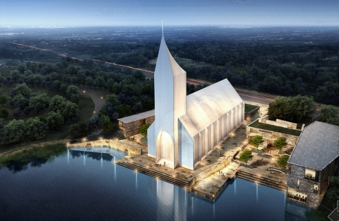 RSAA公布了张家港教堂项目的设计方案,这是一个社区中心及教堂综合体项目,位于中国张家港。该项目应对了宗教建筑目前面对的挑战,主教堂独立于其他功能,从而让附属功能更好地支持该建筑。社区中心的建筑群围绕着教堂形成开放式的环状布局,直接东西向布局,以保留传统历史布局。这种布置进一步为教堂隔绝了街道噪音,同时让综合体与毗邻湖泊保留有强烈的联系。教堂自身是对传统巴西利卡教堂的现代诠释,一系列外部金属薄片之间形成弧形的室内空间。这些薄片额外赋予了建筑强烈的透视感,教堂的外观会随着观察者的视点变化而变化。位于场地北部的附属建筑布置了祷告和告解的空间,顶层为教堂行政办公室。南部的广场周边设置了餐厅、图书馆、博物馆及小型教堂。
