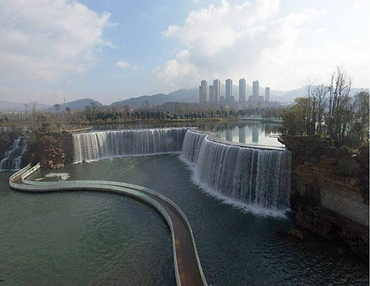 近日,位于云南省昆明市北部山水新区的昆明瀑布公园建设完工并免费向市民开放。该公园于2013年开工建设,总投资约11亿元,是牛栏江——滇池补水工程的重要配套工程。公园的瀑布景观区充分利用牛栏江引水入滇工程而形成人工瀑布及湖泊,其利用约12.5米的地势高差,建设成宽幅约400米的人工瀑布。据了解,昆明瀑布公园1月1日开始对民众开放,这是中国最大的人工瀑布。